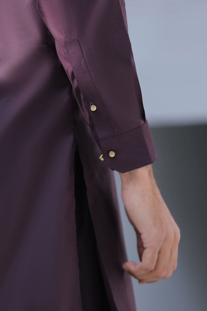 Stitched Signature Logo Shalwar Kameez With Golden Buttons for Men - Dark Purple